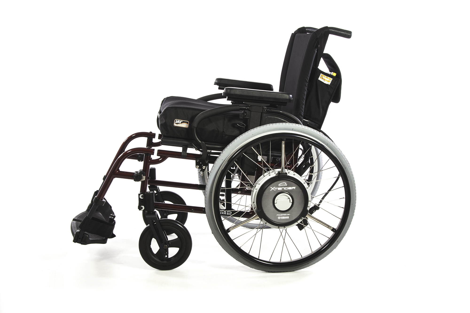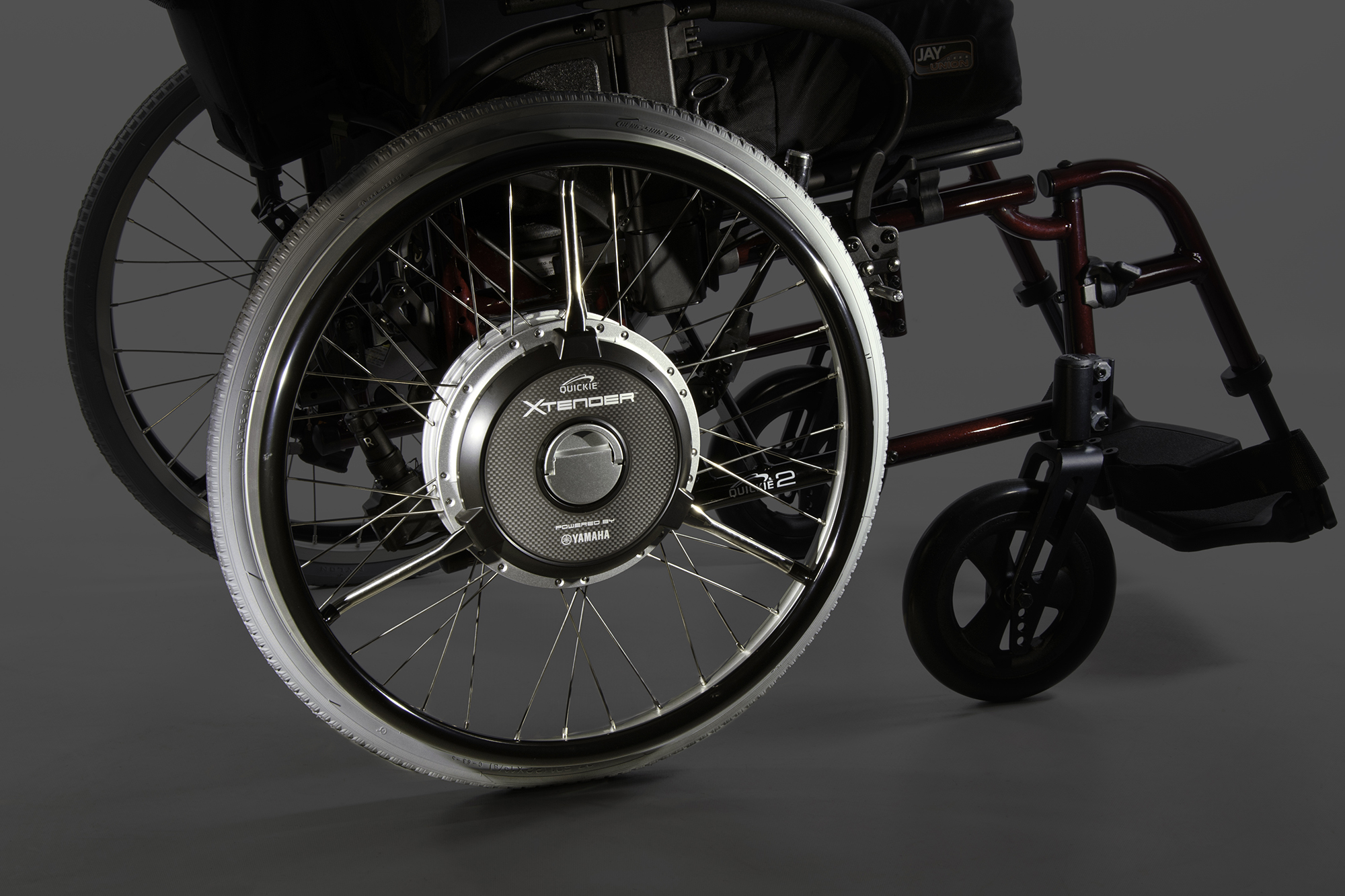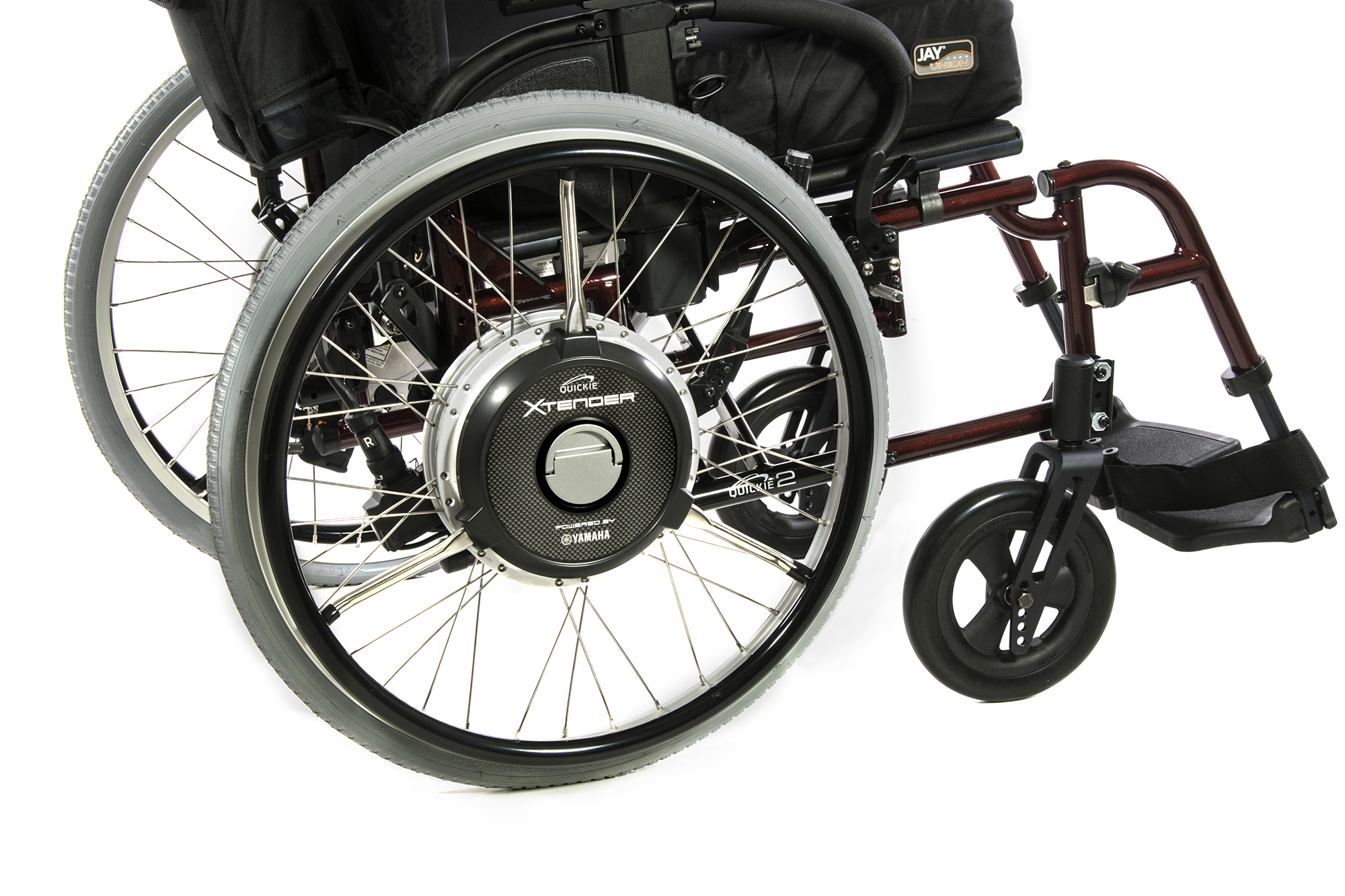 The Quickie® Xtender™ electric assist wheelchair accessory expands the range of mobility for manual wheelchair users by adding power assisted wheels to a manual frame. The Xtender increases your travel distance and propulsion efficiency and reduces overall fatigue while allowing you to maintain the look, control, and functionality of a manual wheelchair. (Quickie Xtender shown on Quickie 2 wheelchair)