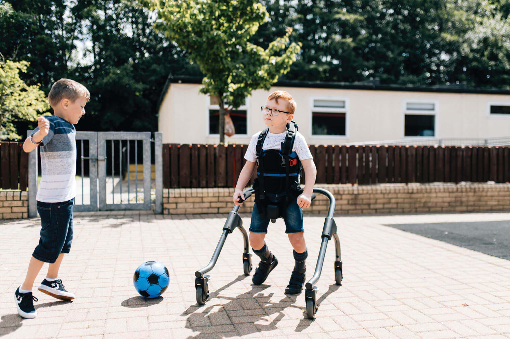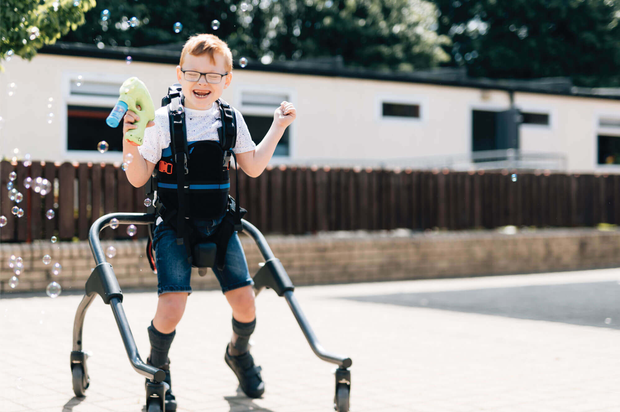MyWay intègre un système unique de harnais-corset pour le tronc avec un support pour les épaules fournissant la stabilité nécessaire pour aider au contrôle de la tête et aux mouvements des membres supérieurs. Les enfants gardent ainsi les mains libres pour jouer et explorer.